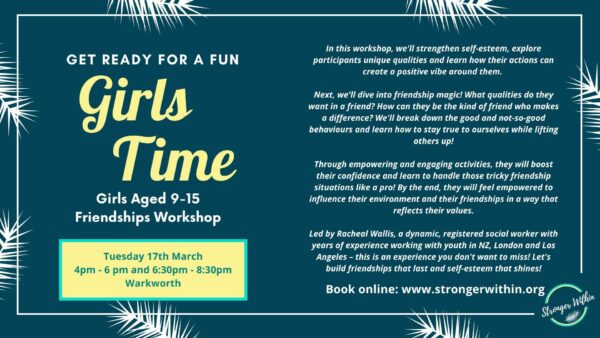 Stronger Within, is a local service run by social worker, Rachael Willis, focusing on raising resilient, kind and confident young people. See below for information on an upcoming course in Warkworth.