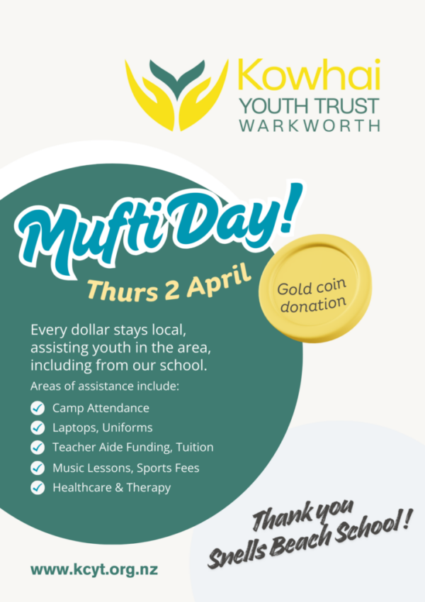 Mufti Day for Kowhai Youth Trust – next Thursday 2nd April